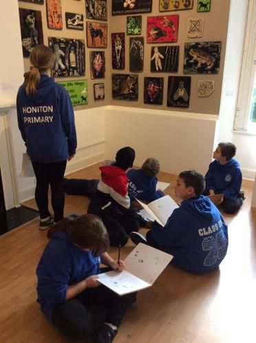 Out of school for another day! This time it was just a short walk through Honiton to the Thelma Hulbert Gallery where we were introduced to two artistic exhibitions. After studying the tapestries of Anne Jackson’s “Cabinet of Curiosities” and Philippa Lawrence’s intriguing interpretations of “A Space Between”, we focused our attention on the similarities between both artists and their connections with nature and how they used cotton, linen, silk and synthetic yarns in different ways.