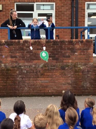 Year 5 investigated how parachute size affects air resistance. After making predictions, they tested two parachutes and found that the larger one fell more slowly due to greater air resistance.
